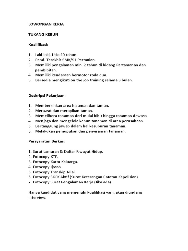 Lowongan Kerja Tukang Kebun Pdf