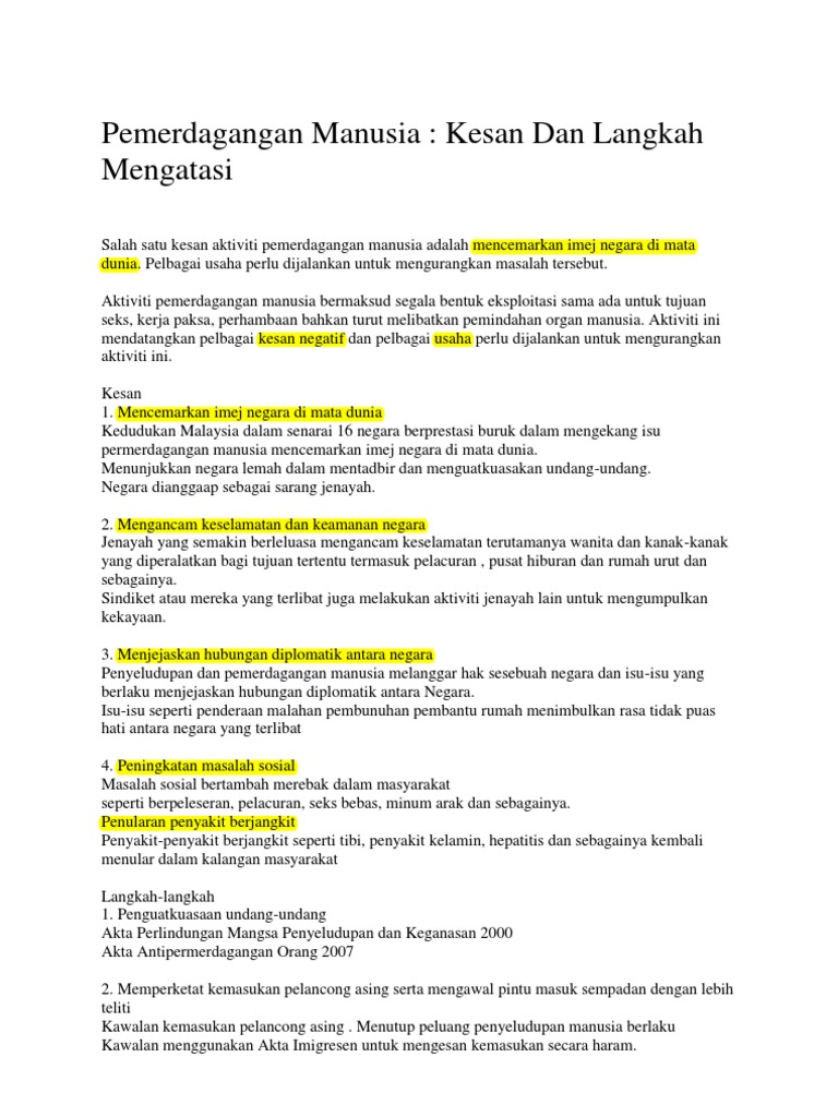 Kesan Pemerdagangan Manusia Dan Langkah Mengatasi Pdf